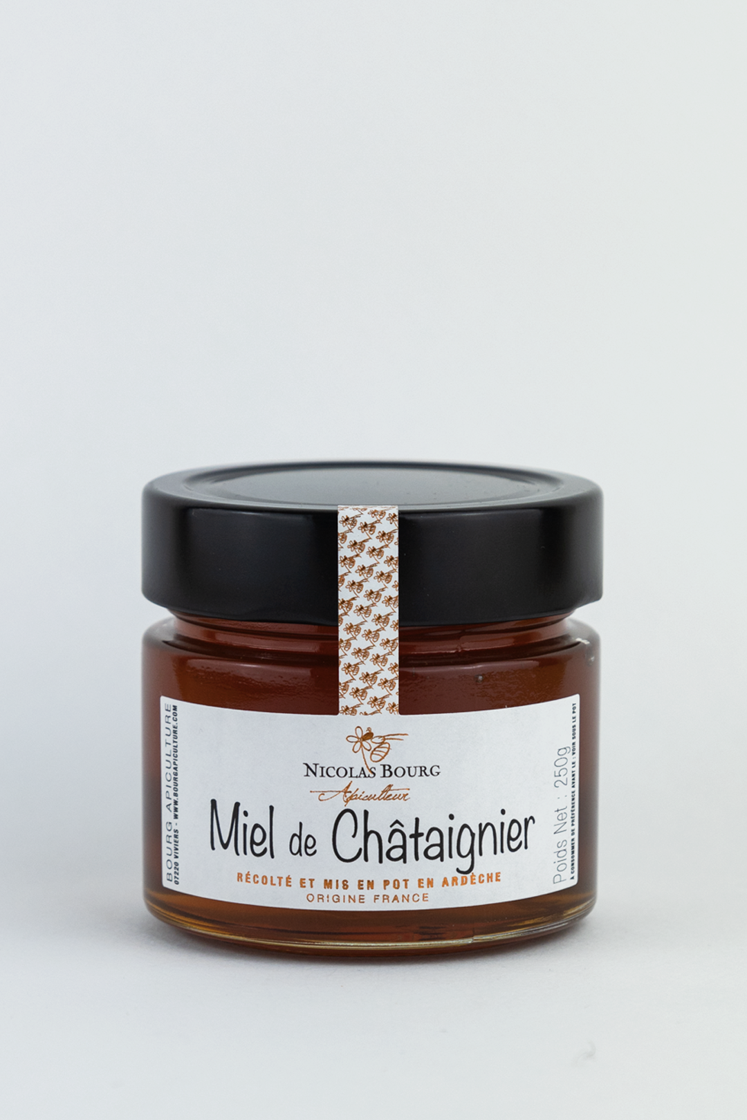 Chez Bourg Apiculture, nous pratiquons une apiculture respectueuse. Nos ruches sont placées au plus près des châtaigneraies sauvages de l’Ardèche. Ce terroir granitique donne au nectar toute sa richesse. En achetant ce pot, vous soutenez une production locale et artisanale, garantissant un miel non pasteurisé pour préserver toutes ses qualités.